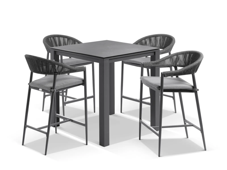 Revan Outdoor Bar Sets 4 Chairs and 1 Table Patio Bar Set (Dark Grey)
