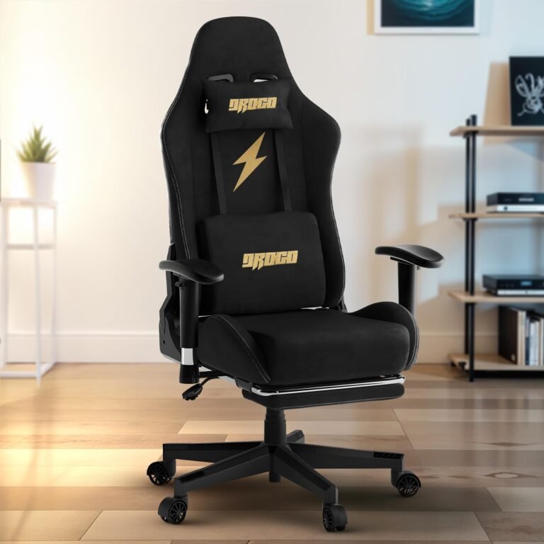 Drogo ProForm Suede Ergonomic Gaming Chair Adjustable Seat & Massager Lumbar Pillow
