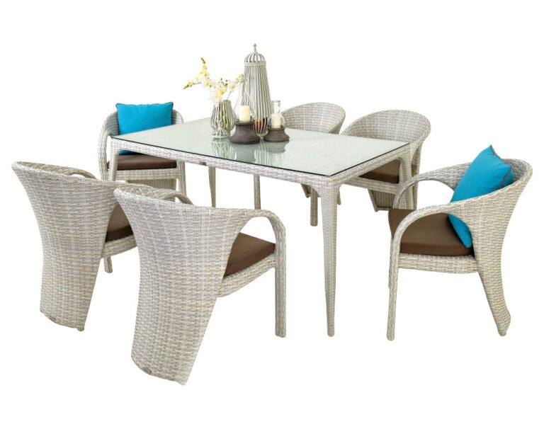 Colombina Outdoor Patio Dining Set 6 Chairs and 1 Table (Pearl white)