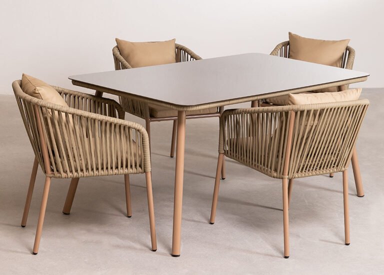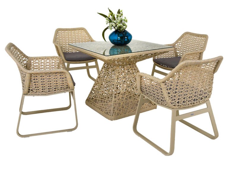 Carlos Outdoor Garden Patio Dining Set 4 Chairs and 1 Table Set Braided & Rope