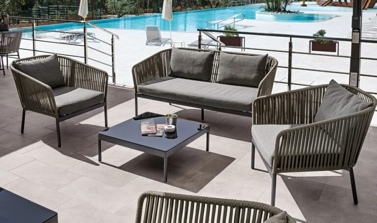 Athan Outdoor Garden Balcony Sofa Set 2 Seater , 2 Single Seater 1 Center Table Set (Dark Grey) Braided and Rope