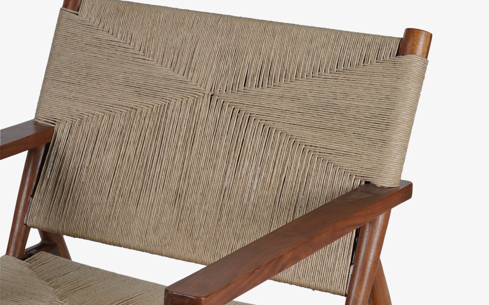 Discover the ideal combination of artistry and comfort with our Abacus Lounge Chair. This lounge armchair features handwoven Danish cord seating and a minimalist Acacia wood frame. The long armrests and relaxed seating make it perfect for ultimate relaxation in any room. Its bold geometric patterns and timeless weaving design add character to your space.