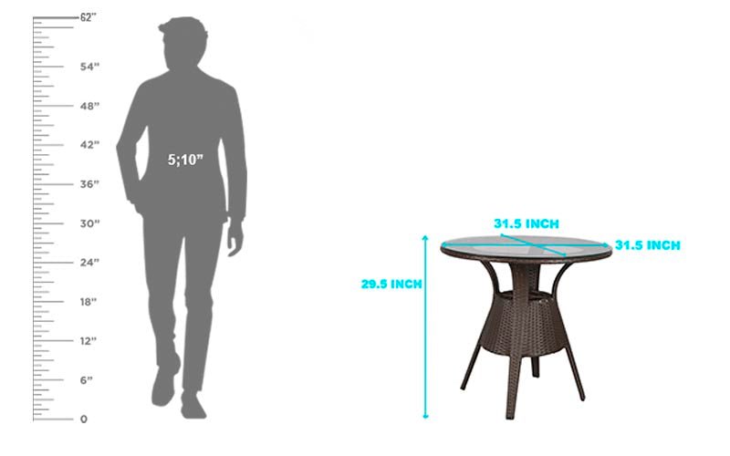 Table: L 31.5 x W 31.5 x H 29 Inches
