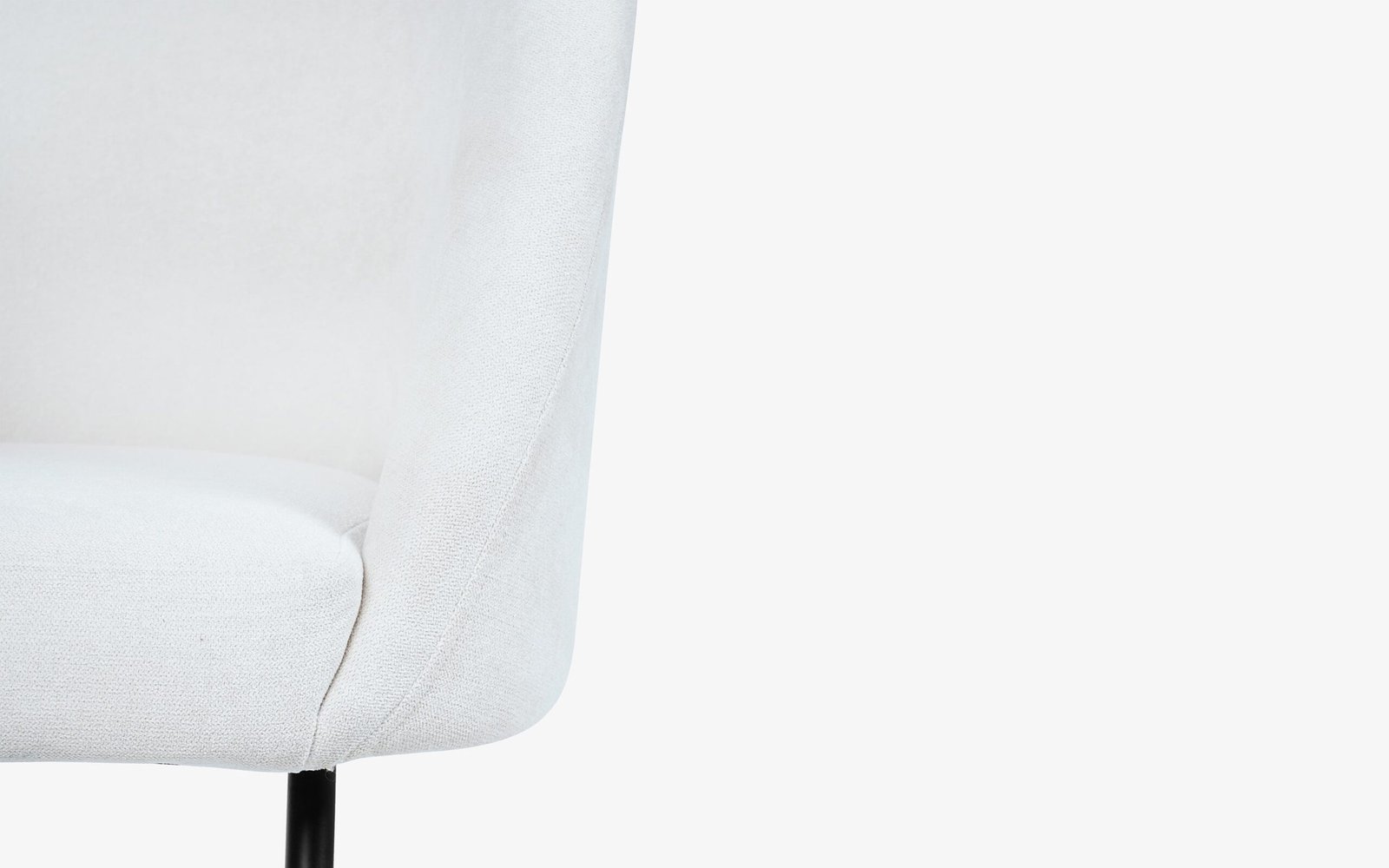 With its well-tailored looks and comfortable cushioning, our Amari Lounge chair brings style to any room. The fully upholstered back nestles a comfy seat cushion and curves to form the backrest. Thin metal legs in a black finish give the chair its streamlined appeal.