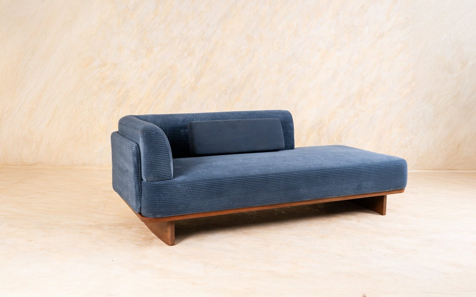 Anish’s daybed combines understated luxury with everyday comfort, making it a perfect lounging addition to any space. Featuring plush cushioning on the backrest and sides, it offers an inviting place to relax or nap. The design is anchored by two sleek wooden legs positioned on opposite sides, lending the piece a light yet grounded feel.