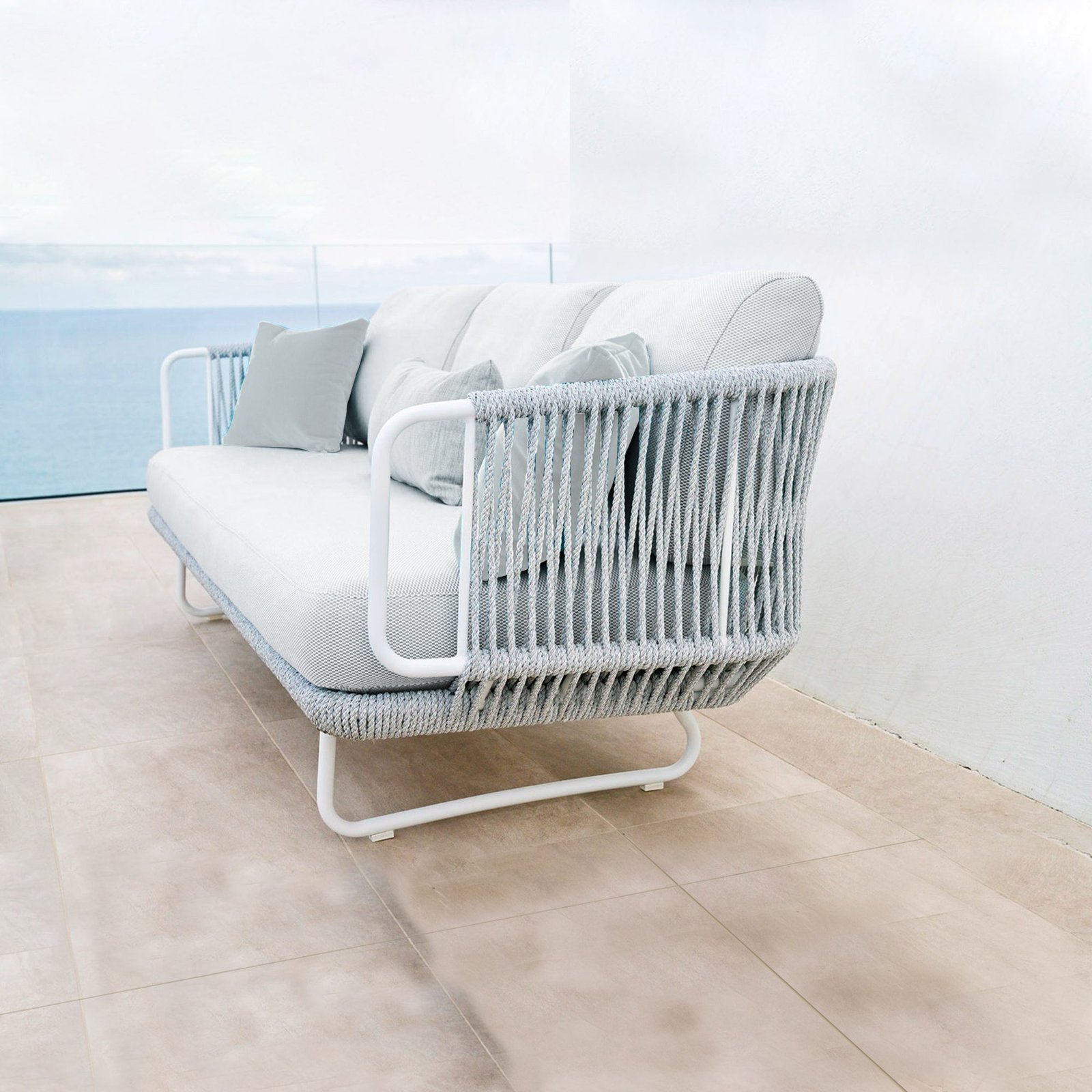 Astor Outdoor Garden Balcony Sofa Set 3 Seater , 2 Single Seater and 1 Center Table Set Braid & Rope (Grey-Off White)
