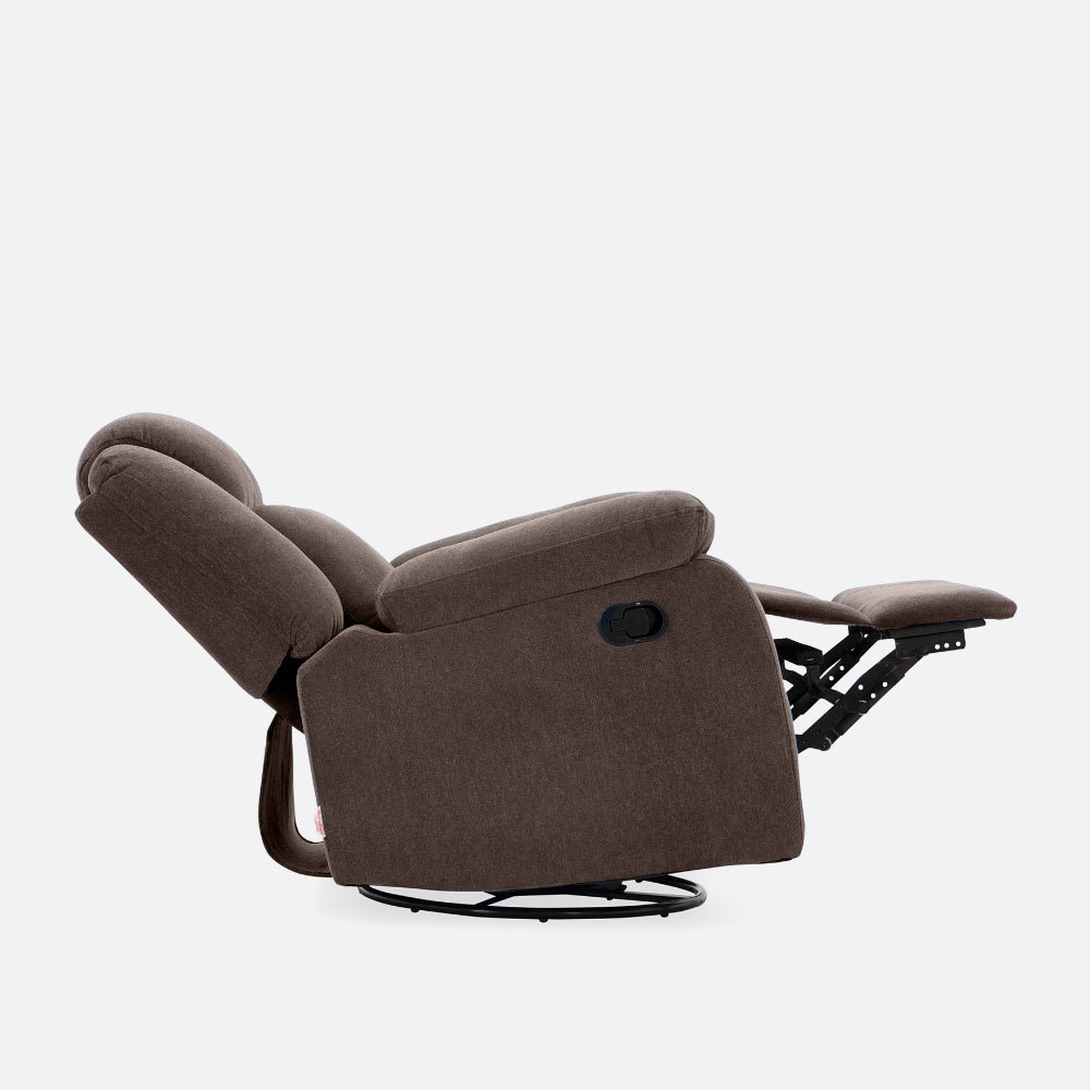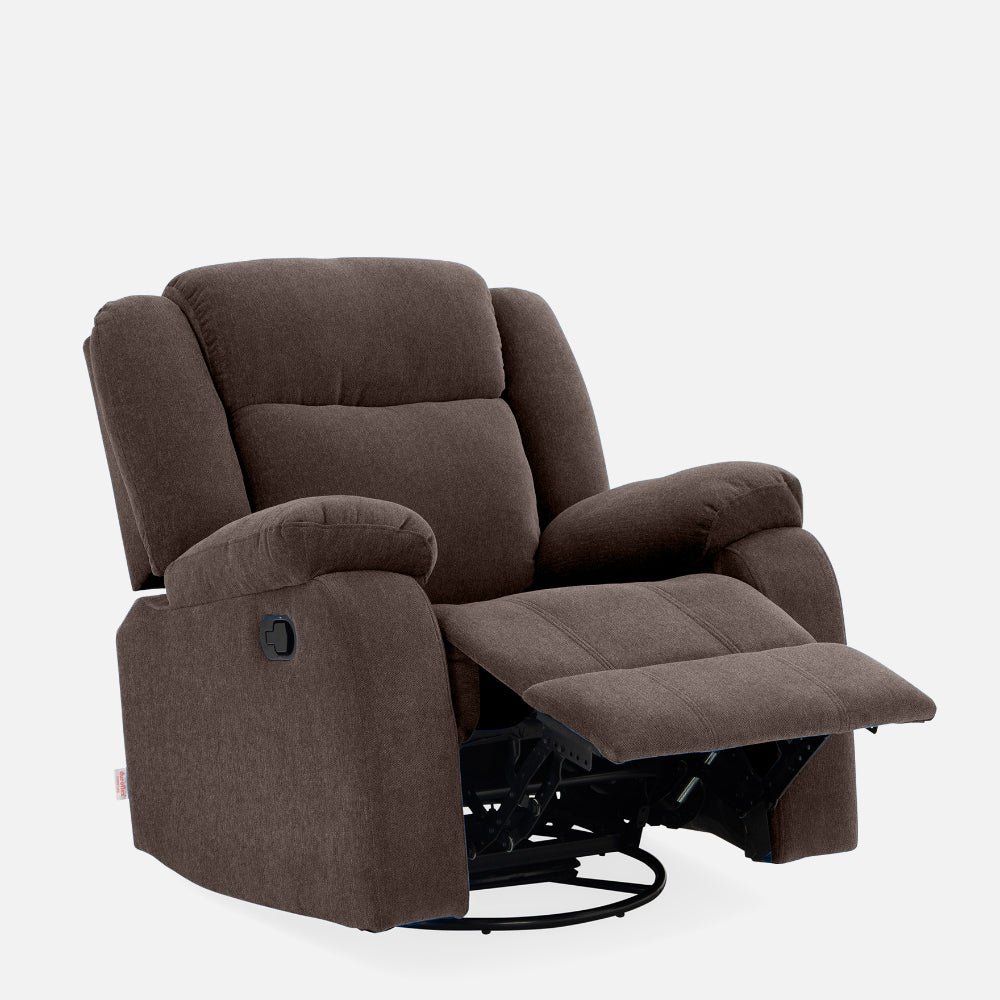 Avalon – Rocking & Rotating Single Seater Fabric Recliner In Dark Brown Colour