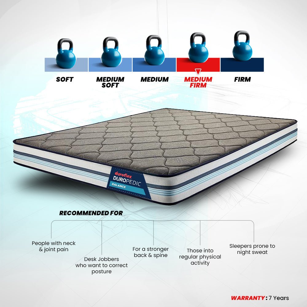 Research-backed and designed to perfection, Balance is all about a rejuvenating sleep experience accompanied by enhanced 5 zoned body support. Ideal for everyday use, this orthopedic mattress aligns the spine and supports the back. The memory foam layer on top provides pressure relief and substantially boosts the quality of your sleep.