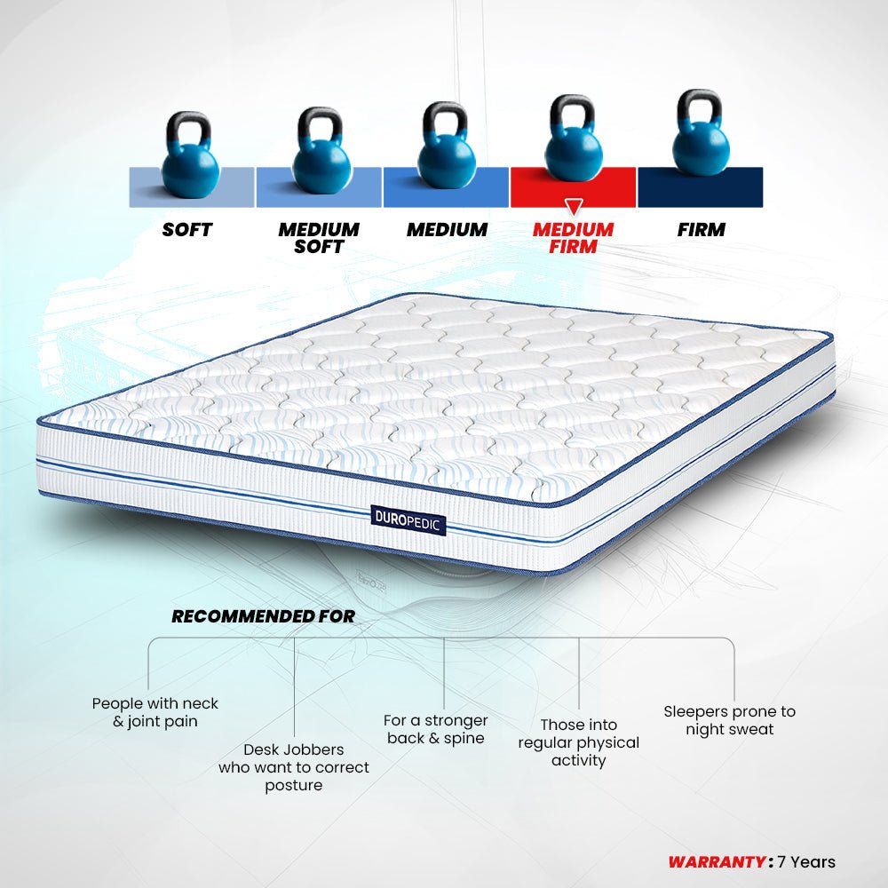 Tested and recommended by the National Health Academy, this certified orthopedic mattress from our Duropedic range complements all kinds of sleep needs.