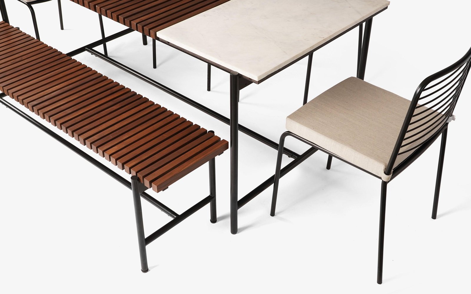 Elevate your outdoor dining experience with the Covent Garden Outdoor Dining Set. This set seamlessly combines style with durability, boasting resistance to the sun and water. The Covent Garden Outdoor Marble Top Dining Table features a steel structure and a teak wood and marble tabletop, adding a touch of sophistication while standing up to the elements. Complement the table with Covent Garden Stackable Chairs, offering comfortable seating and style, specifically designed for outdoor use and conveniently stackable when not in use, while remaining resilient against sun and water. The Covent Garden Outdoor Bench, sharing the same design principles, is a versatile addition to your outdoor and indoor spaces, ensuring long-lasting style and functionality.