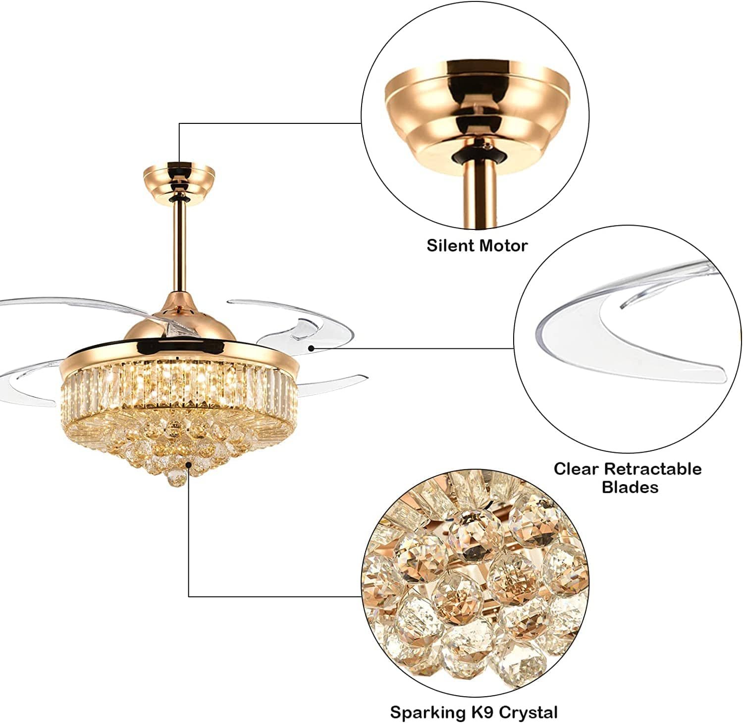 - 42 Inch Modern Crystal Ceiling Fan with Lights