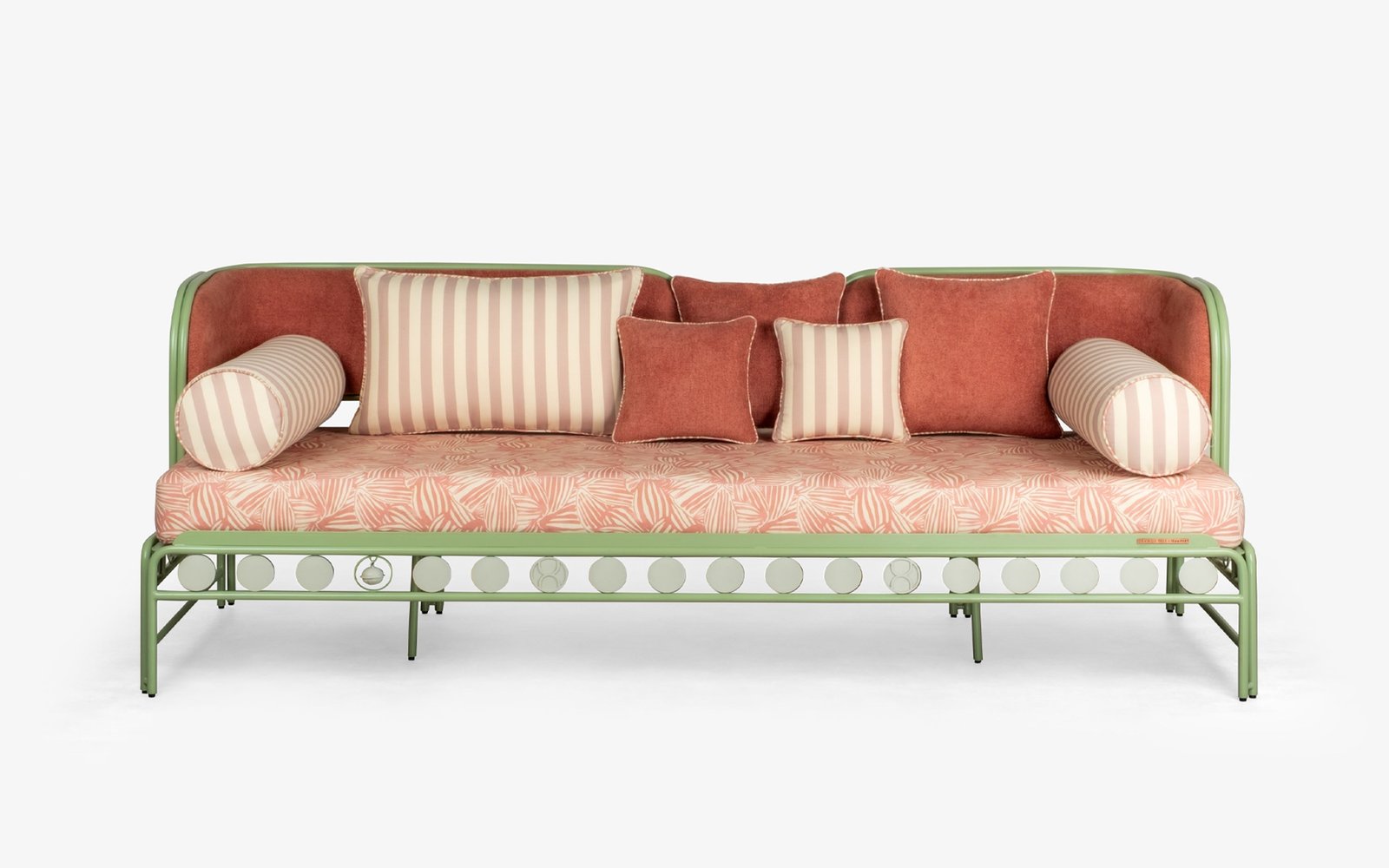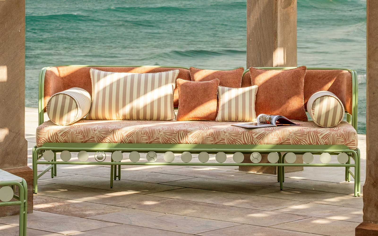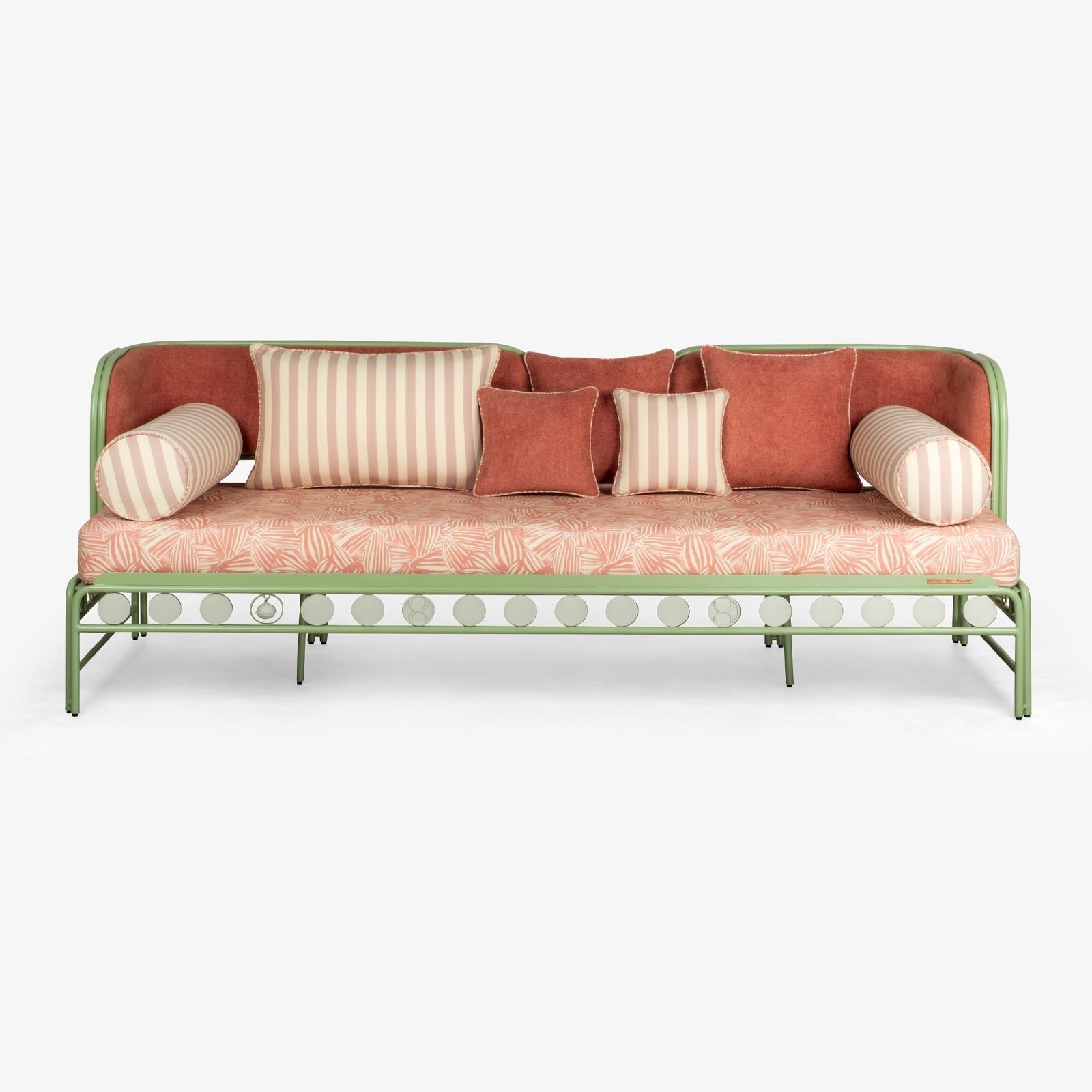 The Dastoori 3-Seater Sofa beautifully combines style and durability. With its unique cantilevered seat made from bent stainless steel frame and charming vintage-inspired details like hand-applied medallions and custom-cast bells, it stands out in any outdoor space. Plus, the plush, weather-resistant fabric ensures comfort and longevity for your relaxation.
