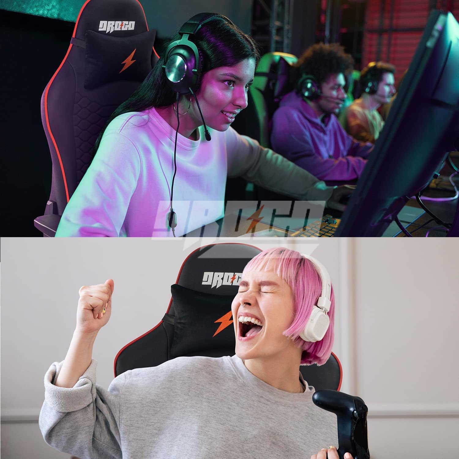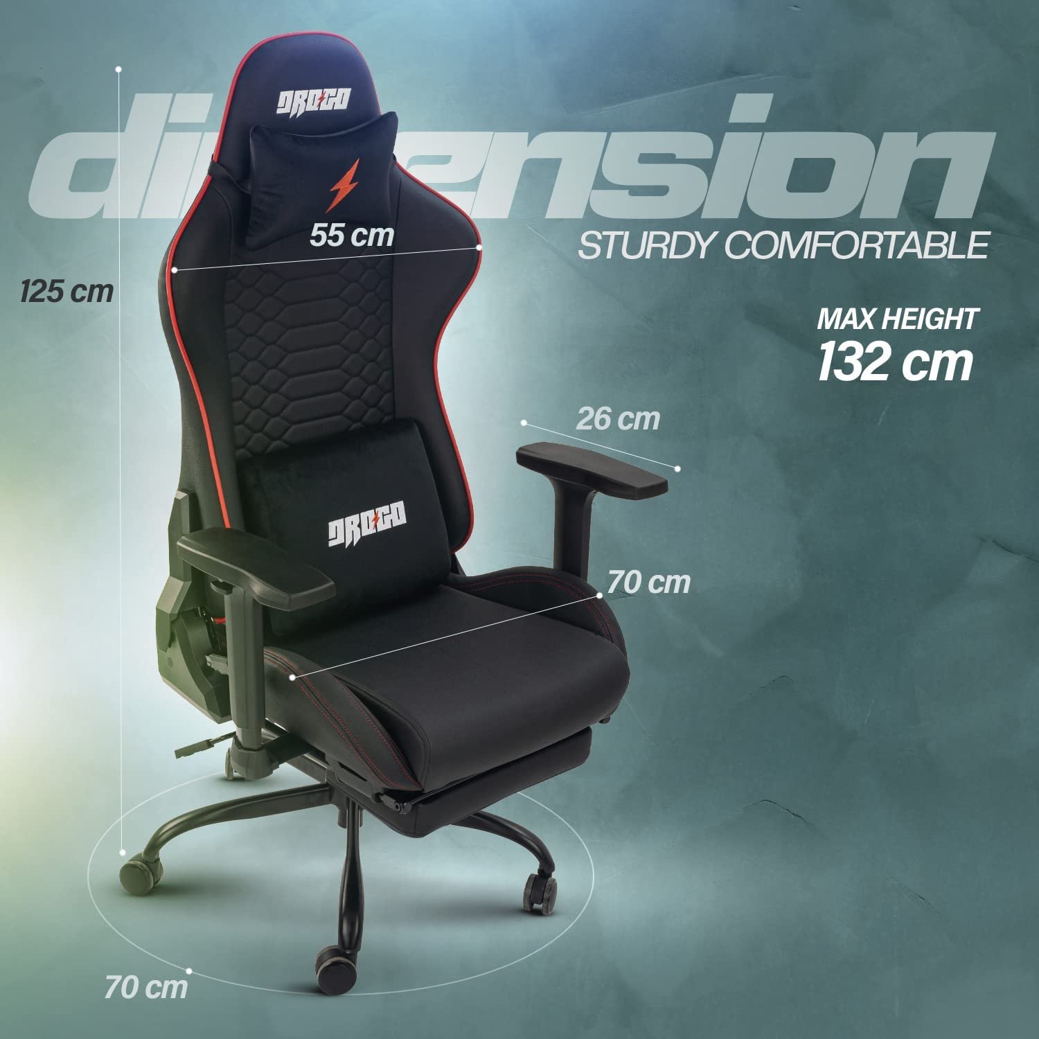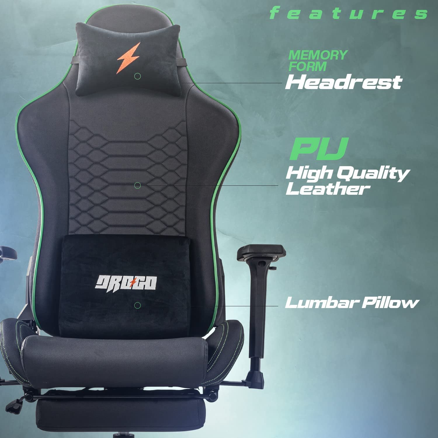[Designed for Comfort] – Drogo gaming chair is made of high-quality materials The soft cushion is made of a high-density sponge, and the entire seat is wrapped in elastic PU leather. The back of the chair provides multi-point support, matched with soft memory Foam lumbar and headrests Pillow, which perfectly fits your spine. The retractable footrest can be adjusted at will.