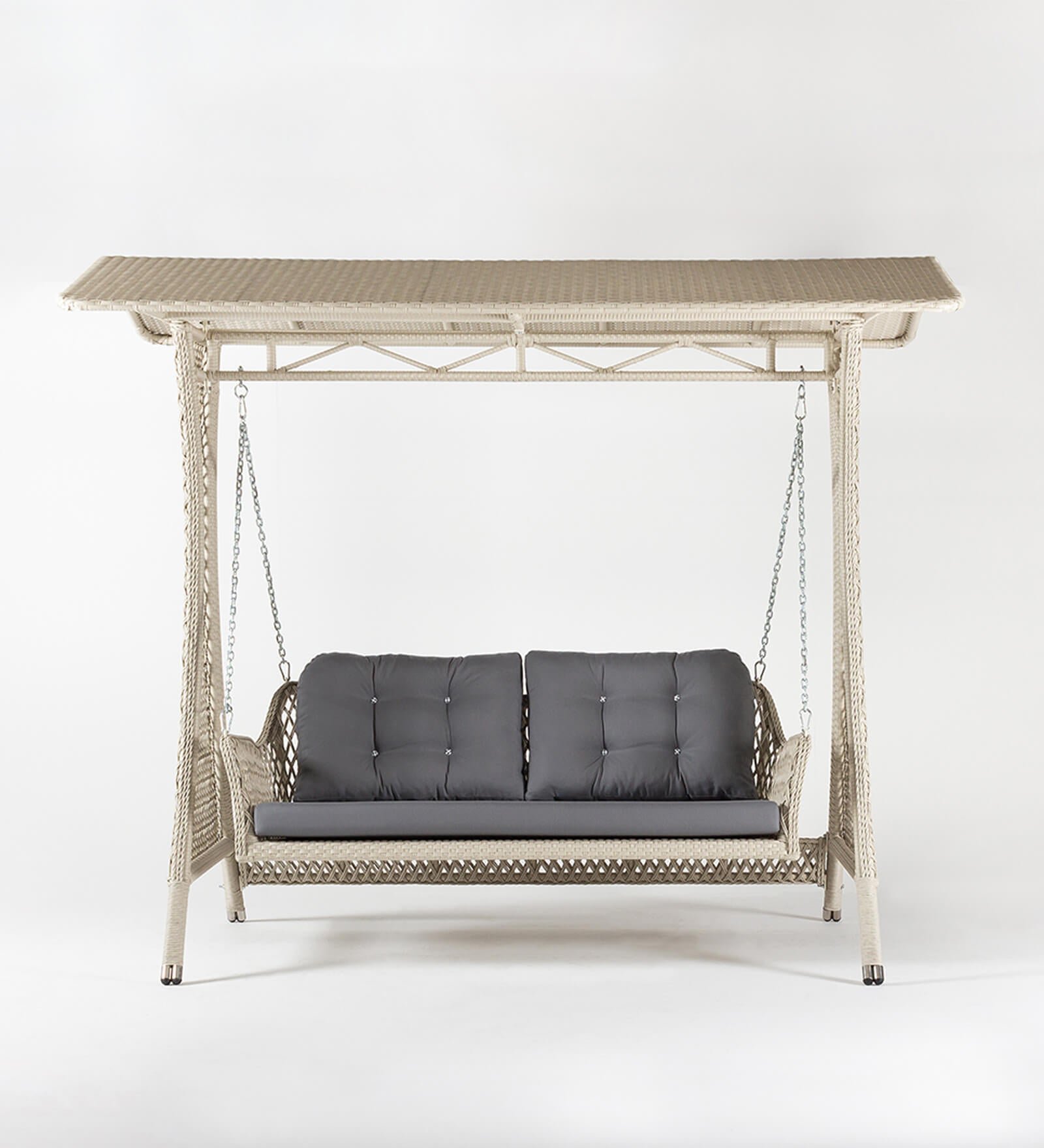 Ezio Double Seater Hanging Swing With Stand For Balcony, Garden Swing (Cream)