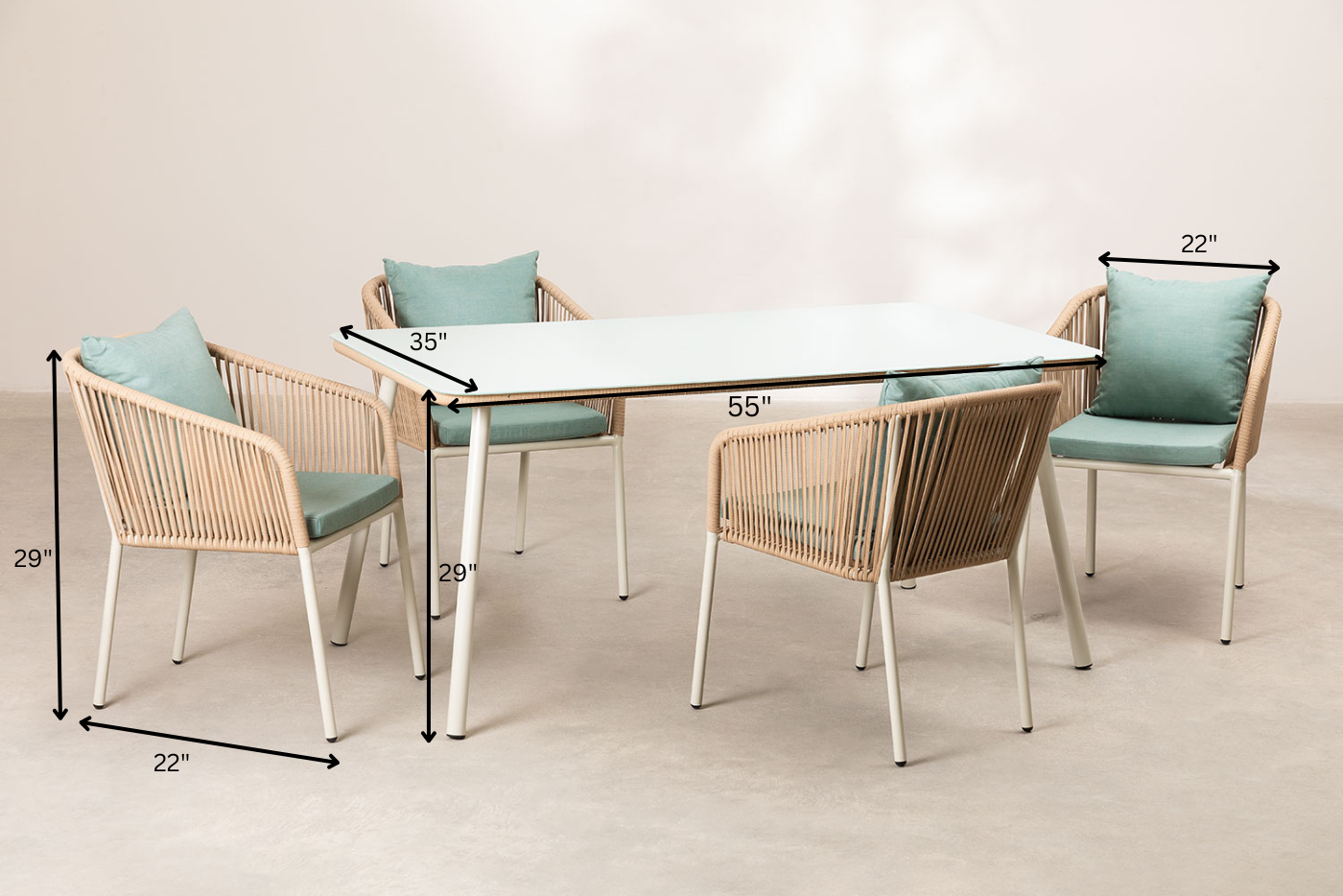 It is not what’s on the table that matters, it is about who sits on the chairs. Together is the best place to be, so dine with your beloved family in this affordable outdoor furniture set, appropriate for homes, cafes and restaurants. This outdoor table set provides you with a fine glass-top table and Four chairs with comfortable hand-rests.