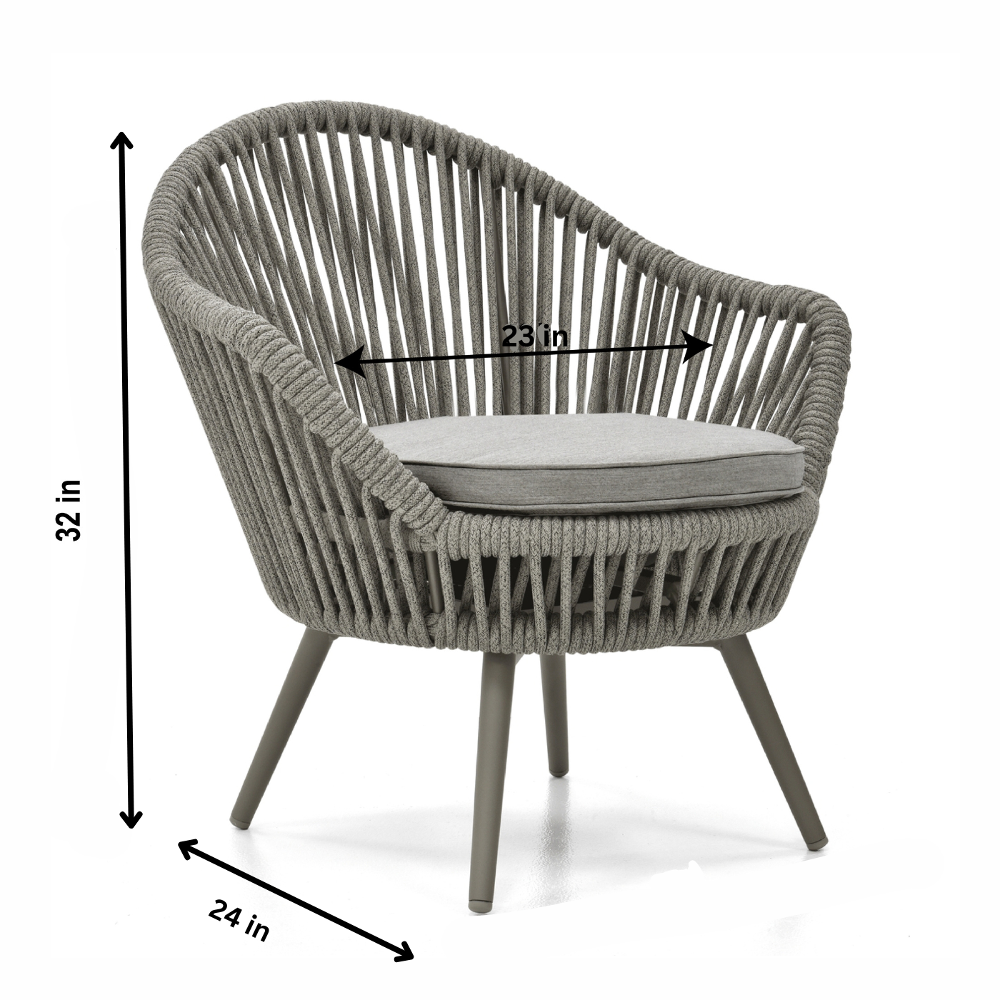 Chair: Width 23 inch, Depth 24 inch, Height 32 inch