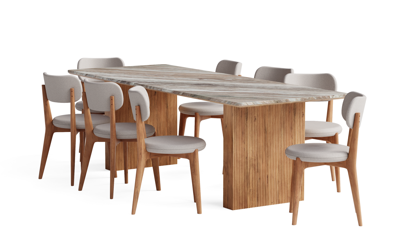 Enrich your home furnishings with this Hiro dining table and enjoy a lovely dining experience, accommodating 6 people. The marble-top dining table exclusively features Toronto marble that shines brightly and reflects a clean surface look. It has a sturdy construction along with a vertical pattern on solid wooden legs, is naturally finished and is made with acacia wood, which adds to its longevity and durability. Its bold and effective features easily blend with all decor styles, serving its purpose.