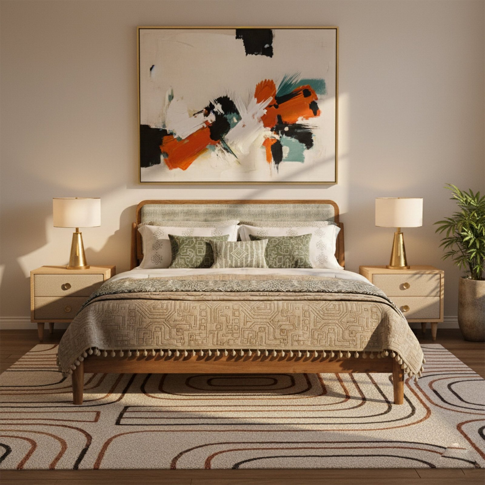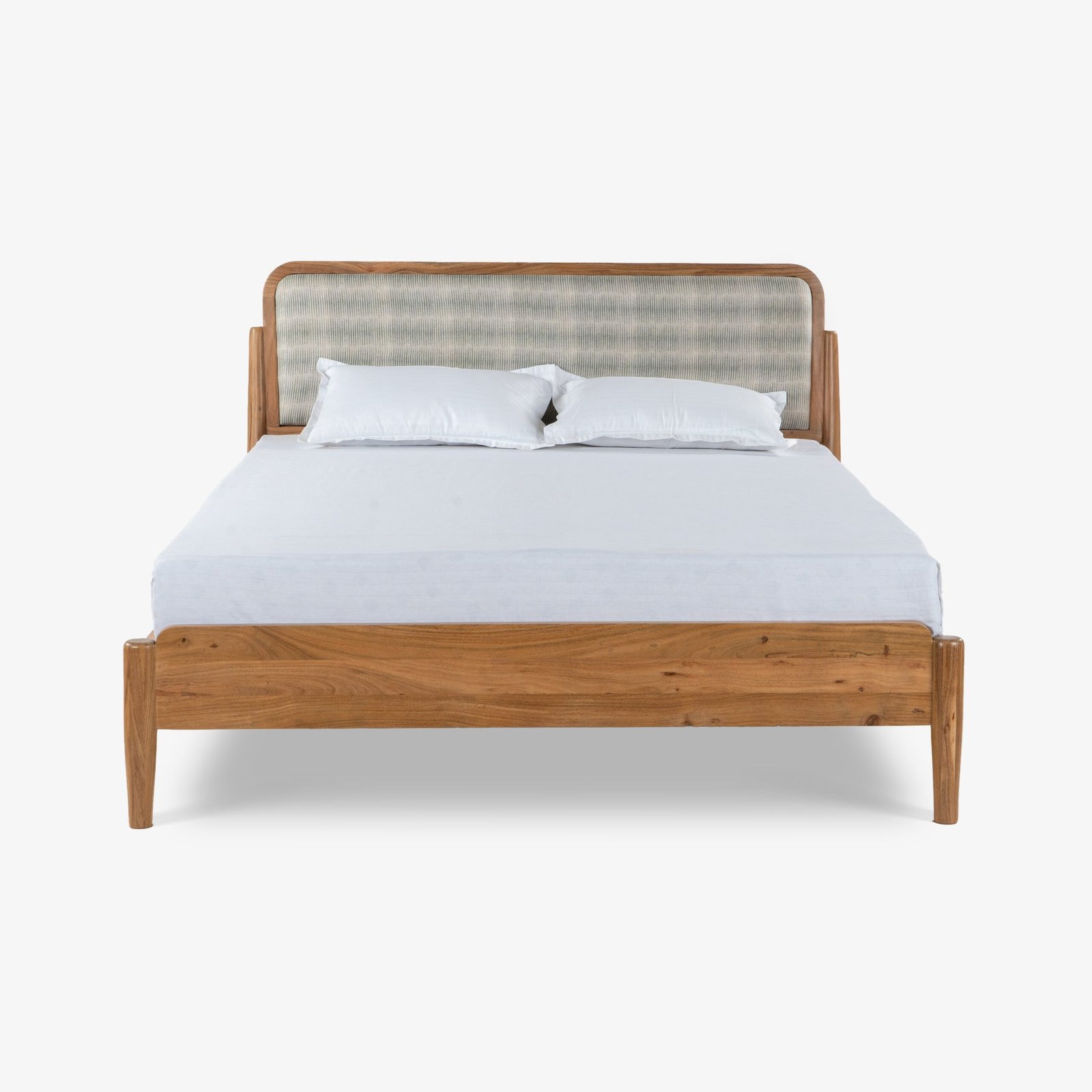The Kanan Bed takes its name from the Sanskrit word for “forest grove,” reflecting its natural charm and earthy textures. A upholstered headboard pairs effortlessly with the solid wood frame, creating a restful sanctuary that feels grounded in nature.