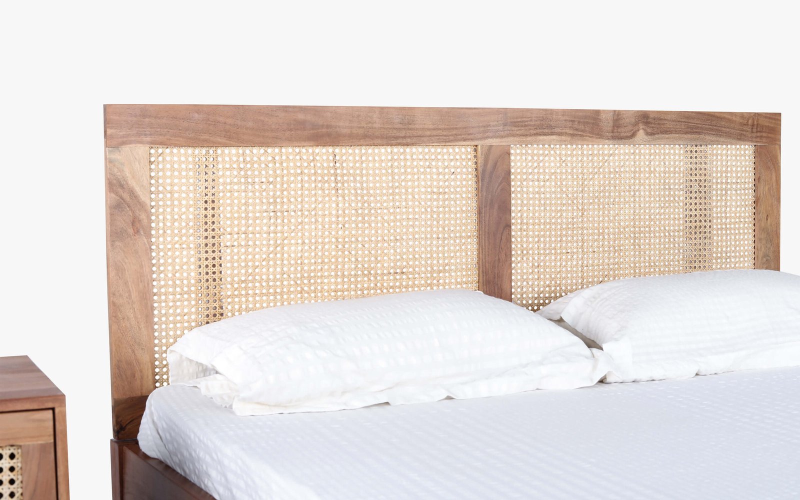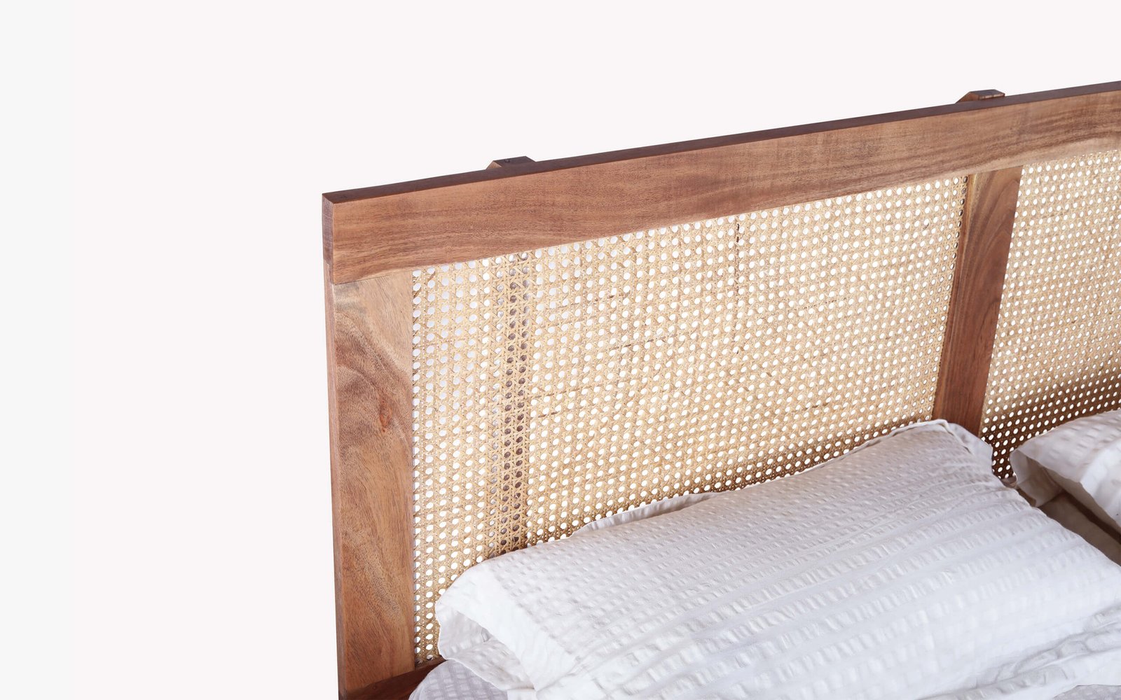 Kyoto, a city in central Japan and a famous cultural centre known for its bamboo forests, inspired our collection, which defines natural minimalism. Open, airy, and unabashedly out of the ordinary, our Kyoto collection takes the traditional mid-century pairing of cane and wood for a statement-making spin. Set within a linear frame of sustainably sourced acacia, woven cane shapes the frames in a natural finish.