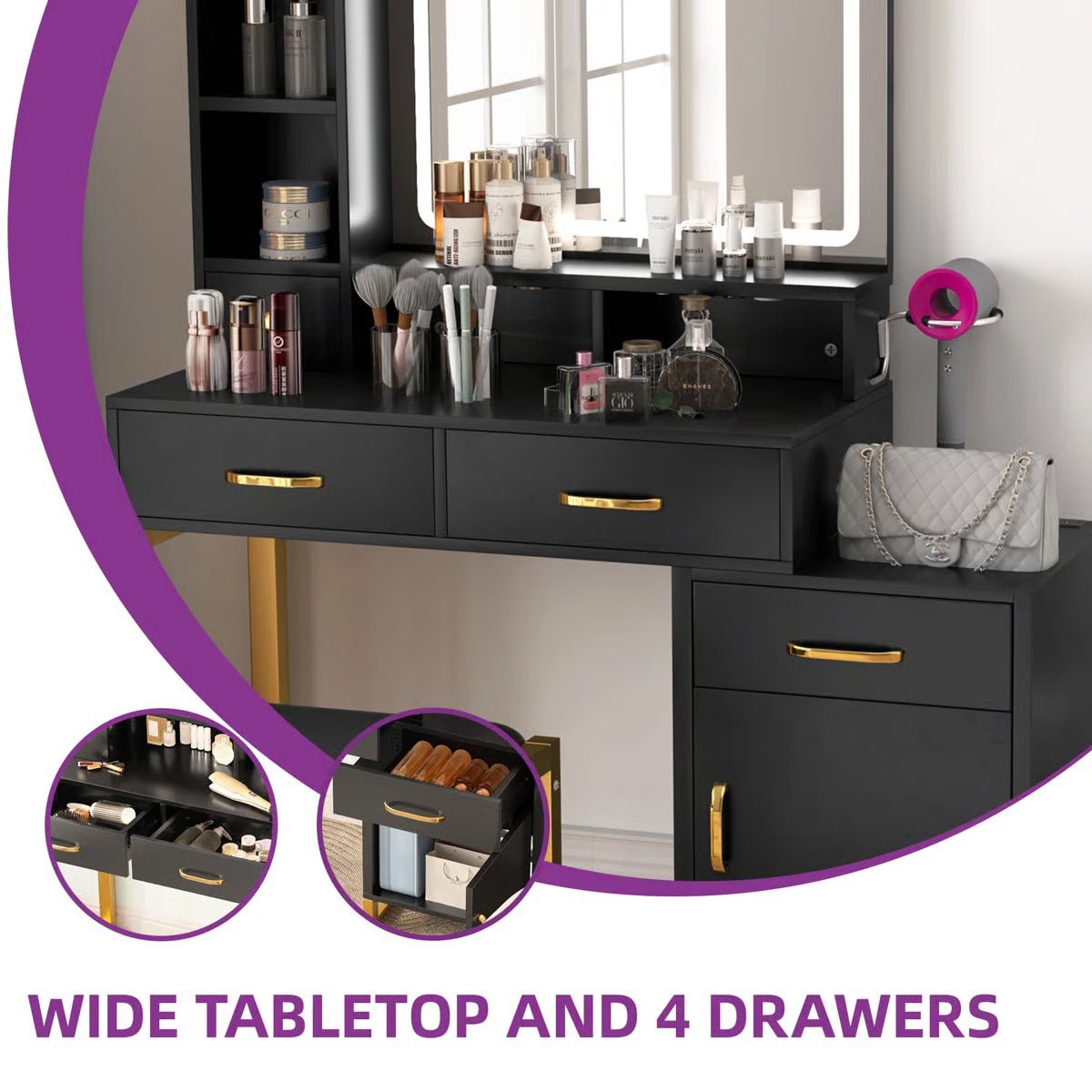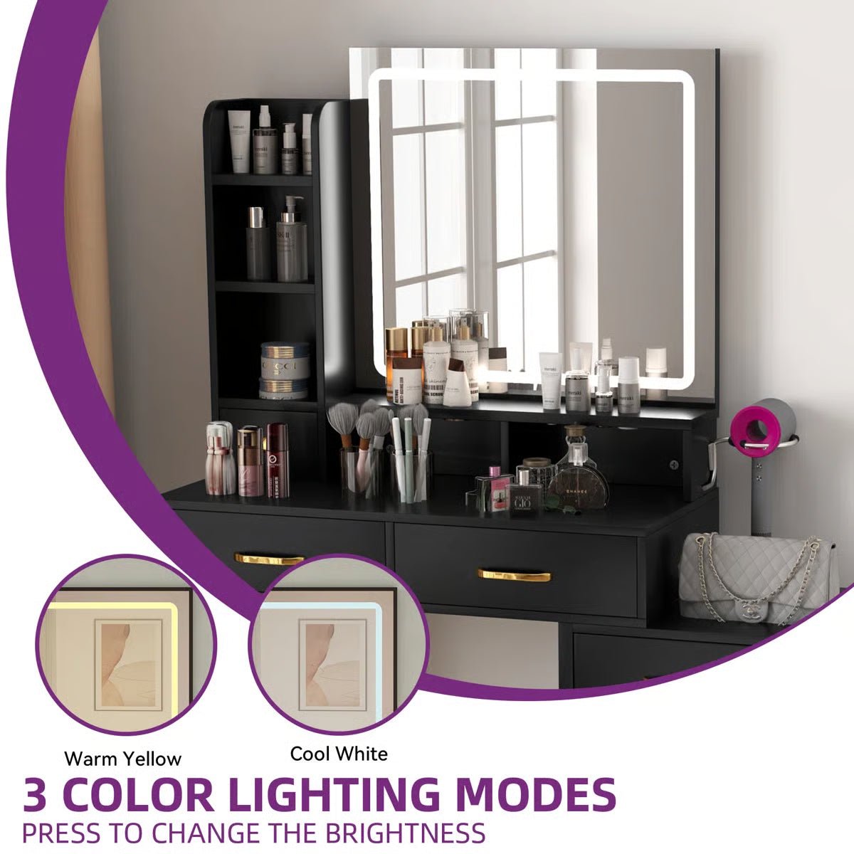 LED Lighted Vanity Set – Makeup Table with Mirror and Stool Included
