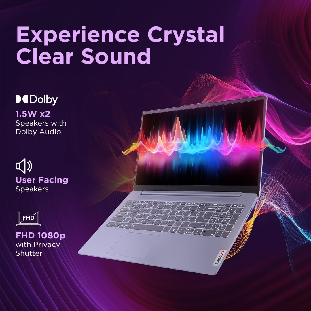 The device has comprehensive entertainment features that enhance your leisure experience. You are in for a visual feast, as you stream your favorite show, and enjoy crystal-clear details and vibrant colors, on a wide display with minimal bezel framing all around to take your breath away. The front-firing speakers of the IdeaPad Slim 3i Gen 9 laptop combined with Dolby Audio™ technology give full-range and ultra-wide acoustics, while TÜV Low Blue Light technology, keeps your eyes relaxed and strain-free.