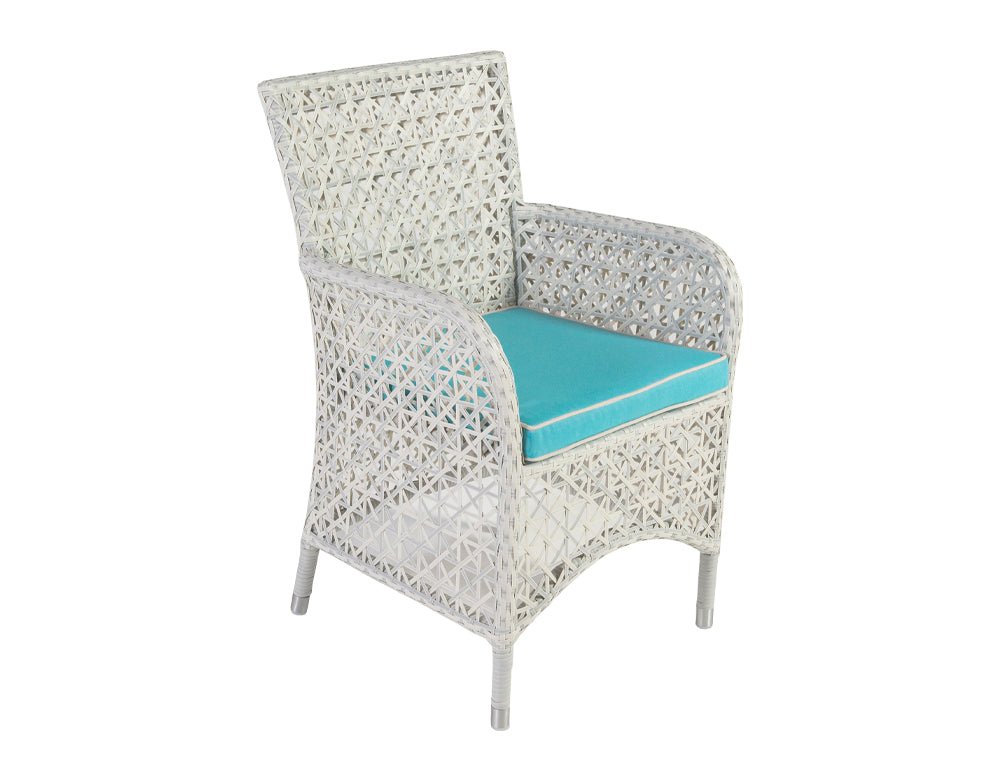 The white Colour Iconic is a piece of our exquisite and luxurious outdoor dining furniture collection, which will add life to your outdoor space. With six chairs and a center table, this exotic furniture easily blends with any space. Renovate your garden space this season with the durable and sturdy Rico Iconic, adding sophistication and delicacy to your furniture settings.