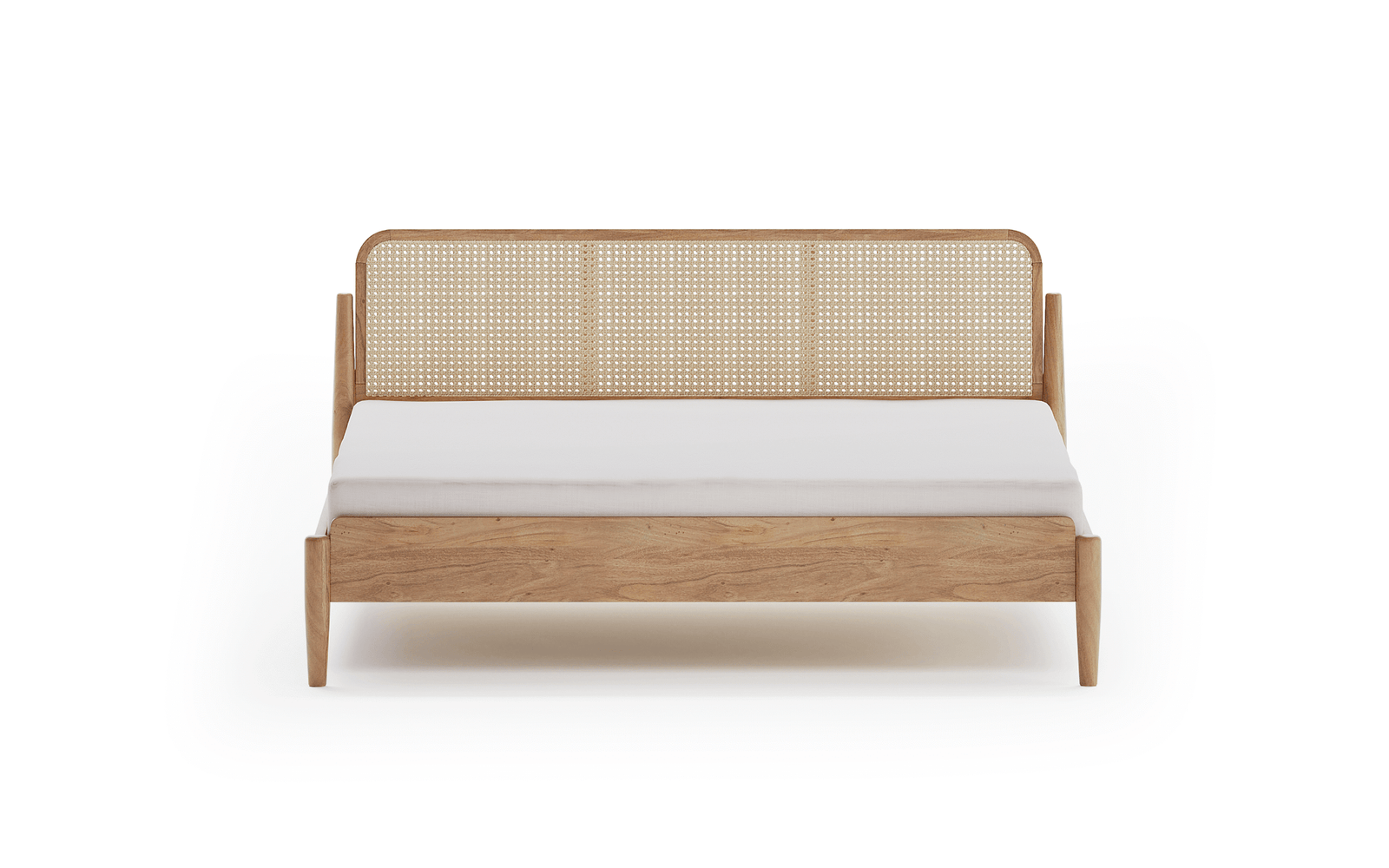 Bring timeless elegance to your bedroom with our Meadow Non-Storage Solid Wood Cane Bed. Crafted from high-quality solid wood in a natural finish, this platform bed features a handwoven cane headboard that adds natural texture and charm. The soft, curved design of the headboard offers comfortable support while enhancing the bed’s warm, earthy aesthetic.