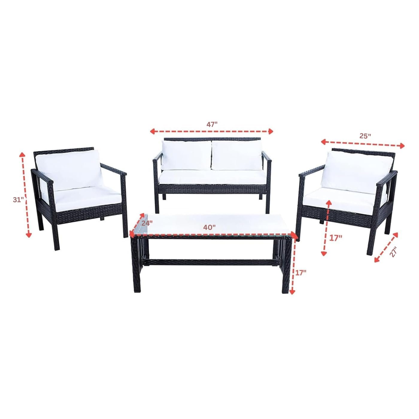 Two Seater: Width 47 inch, D 27 inch, Height 31 inch