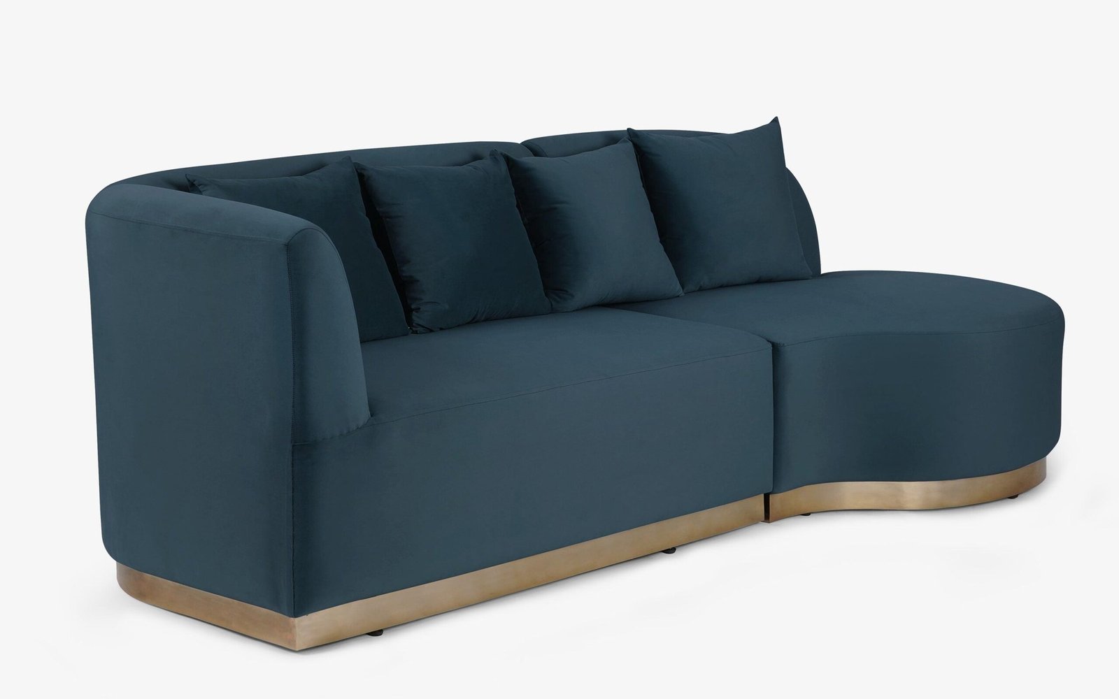 Channeling the 1930s, the Nara L-shape Sofa takes center stage in the modern living room with glamorous curves. The sofa’s flowing lines sweep an asymmetrical extension to complement its graceful shape. Expertly tailored, the large sofa features crisp detailing.