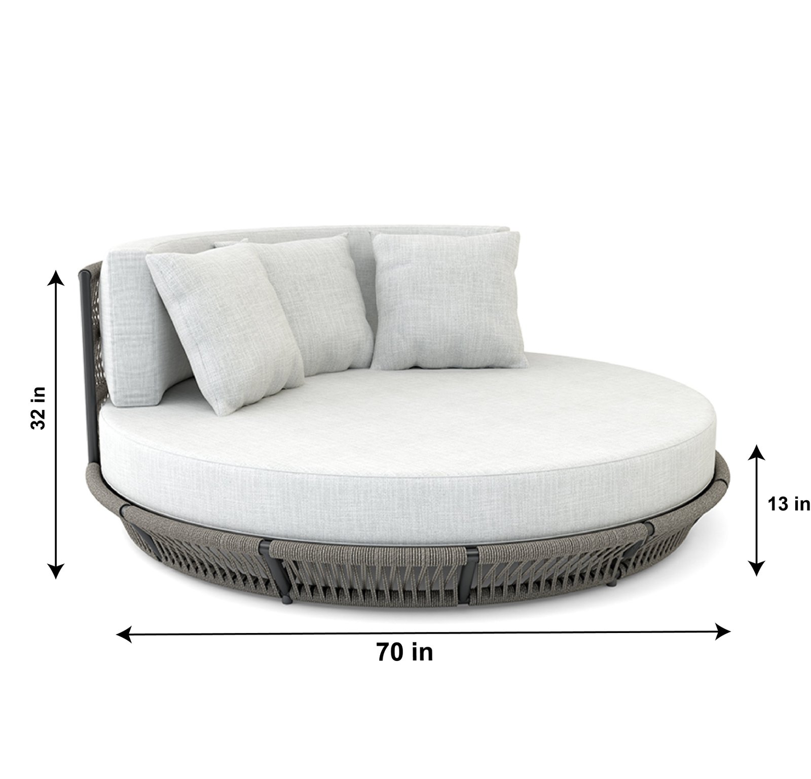 Nemi Outdoor Poolside Sunbed With Cushion Daybed (Grey) Braided & Rope