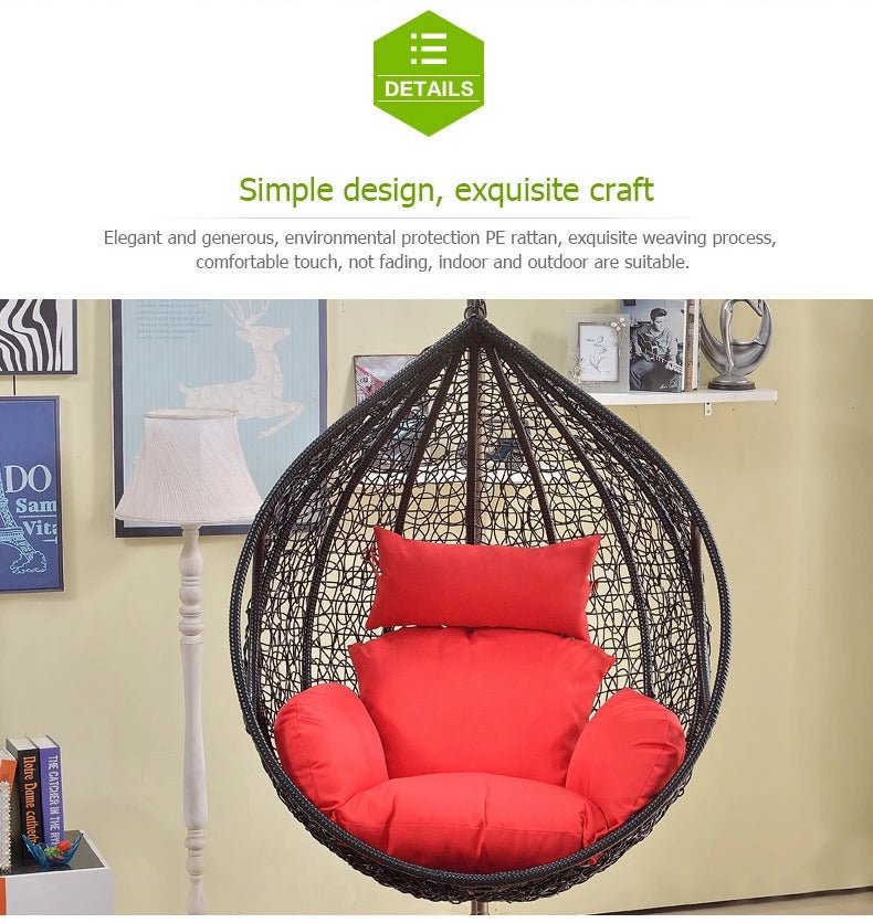 Discover serenity with our Indian-crafted Single Seater Wicker Swing with Stand. Handwoven for timeless elegance, its powder-coated frame ensures durability. Water-resistant, comfortable fabric enhances relaxation, creating a tranquil oasis. Elevate your outdoor space with this blend of artistry and comfort, designed to withstand the elements while offering moments of pure bliss.