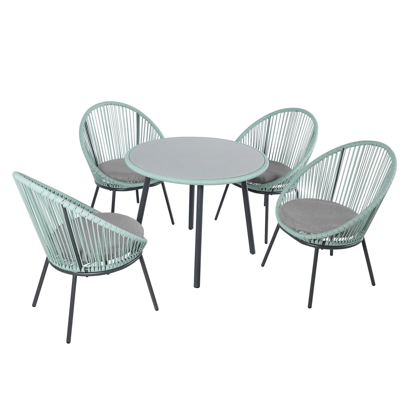 Piel Outdoor Patio Seating Set 4 Chairs and 1 Table Set (Turquoise)