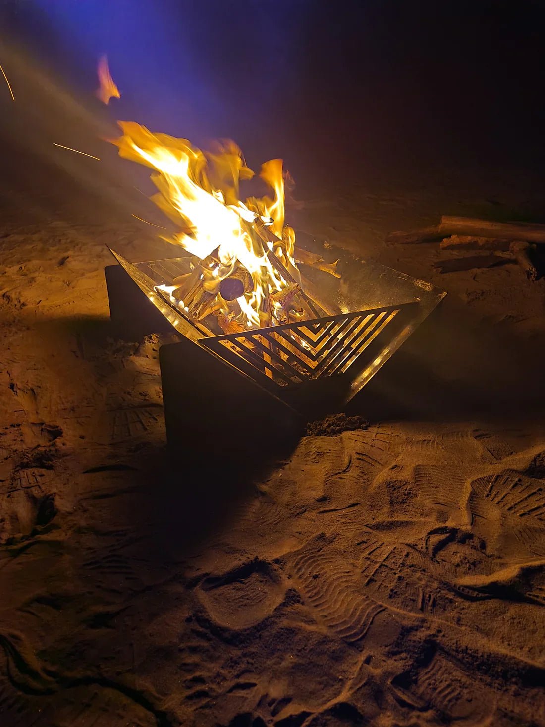 This fire pit is collapsible and can easily fold it to carry or keep it away in storage. You can personalise the text for an extra charge. This piece will have no text otherwise.