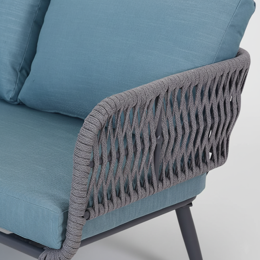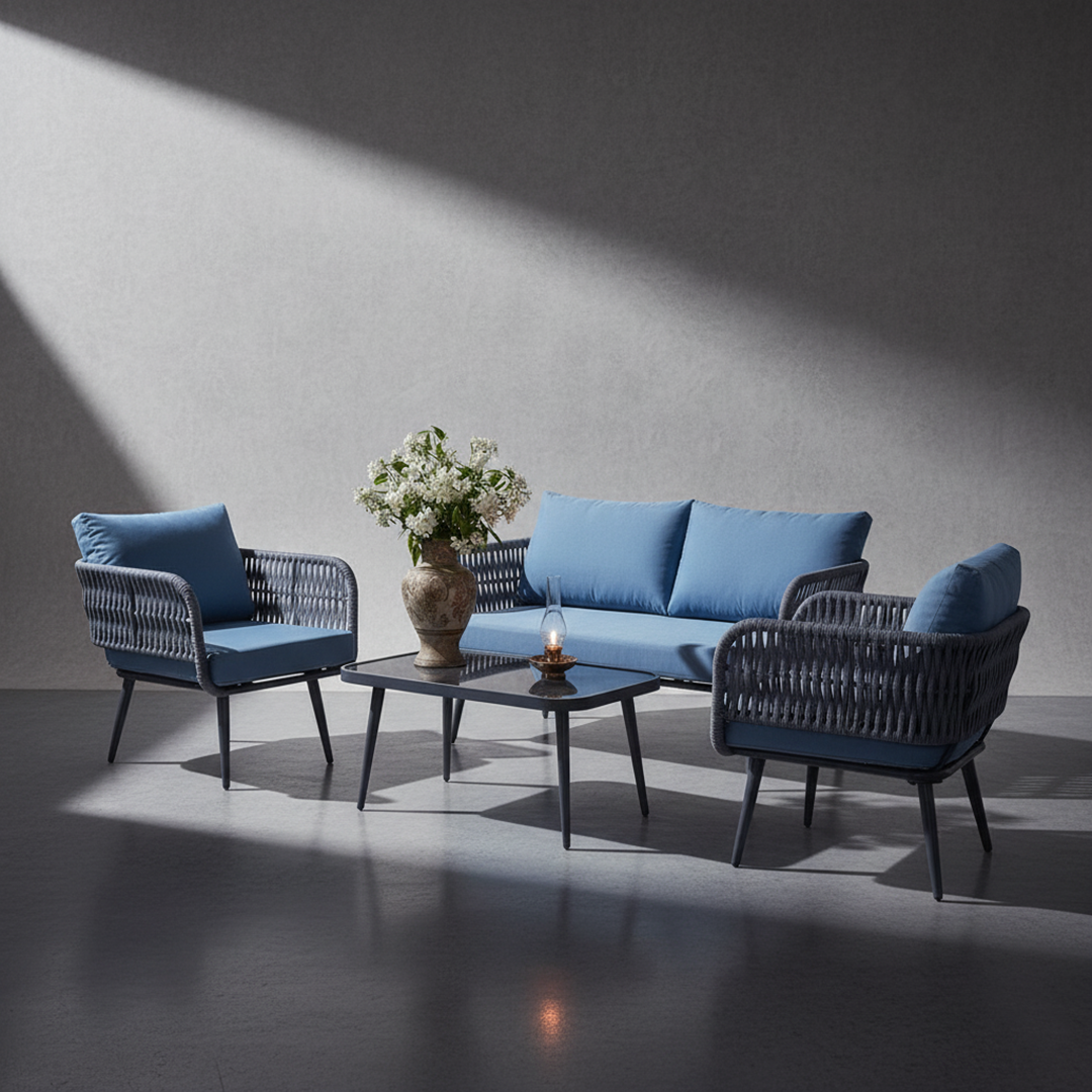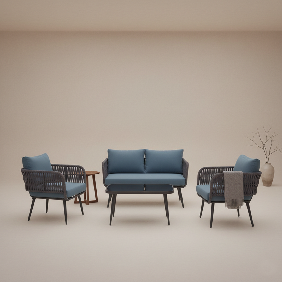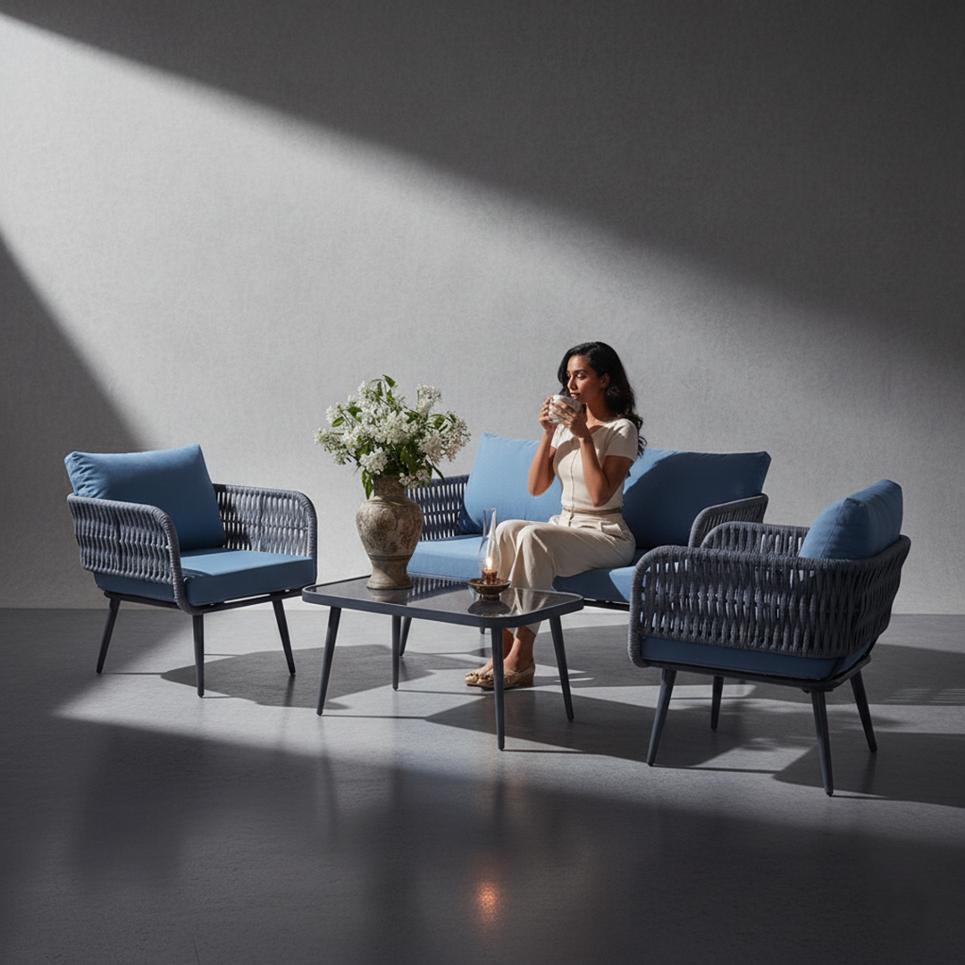 Polari Outdoor Garden Balcony Sofa Set 2 Seater , 2 Single Seater 1 Center Table Set (Grey) Braided and Rope