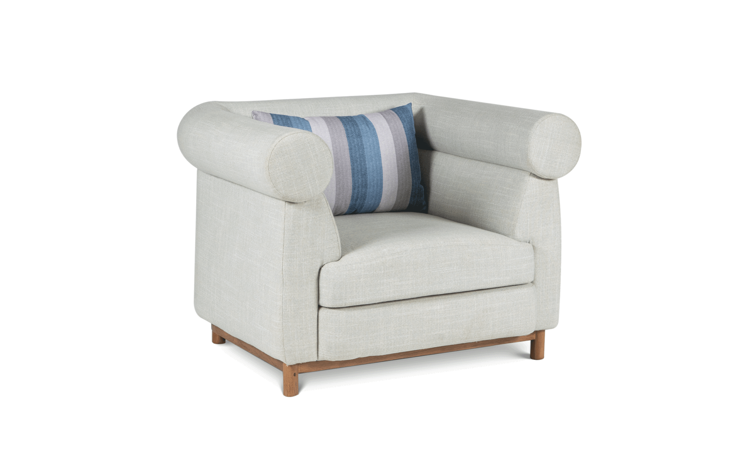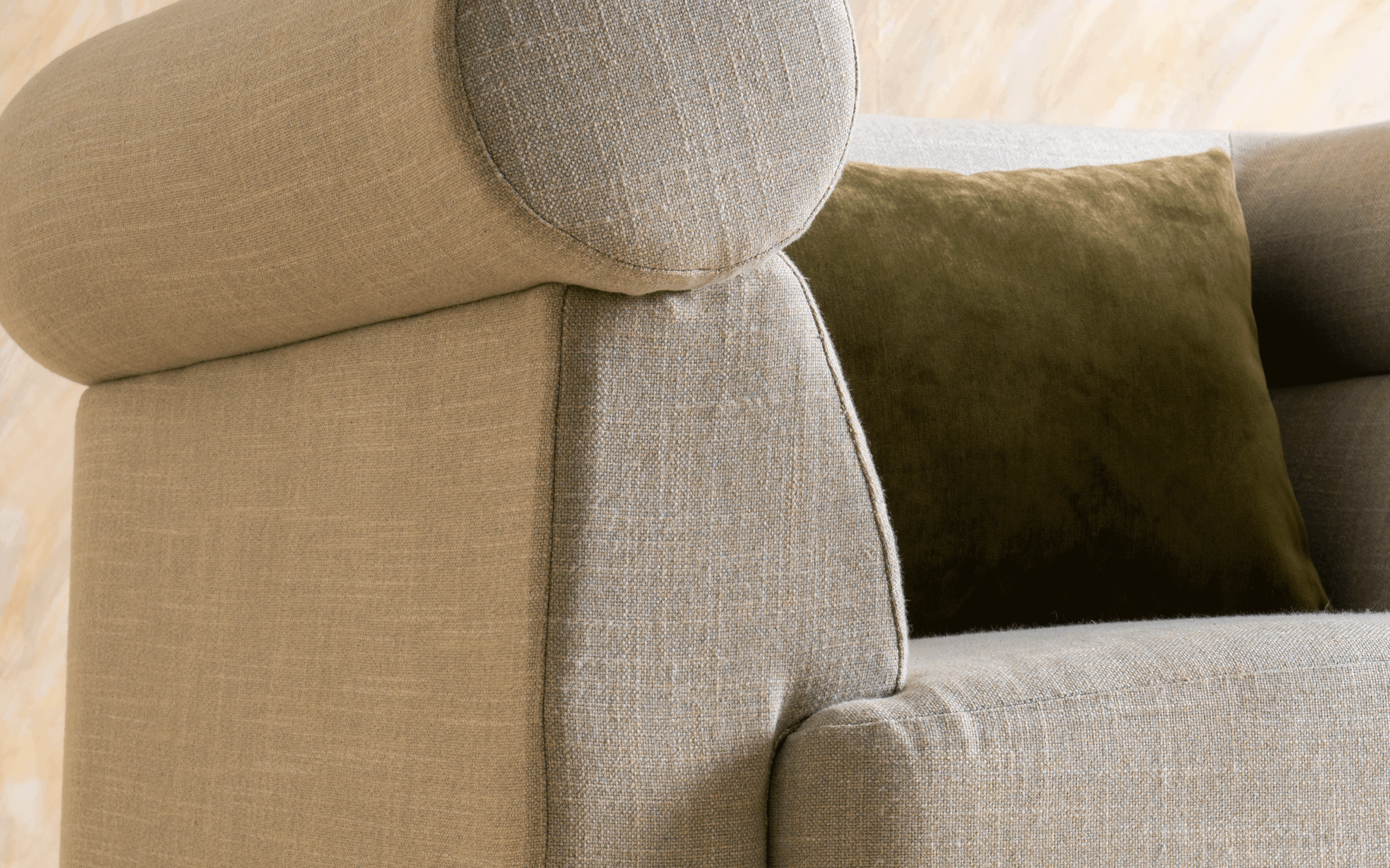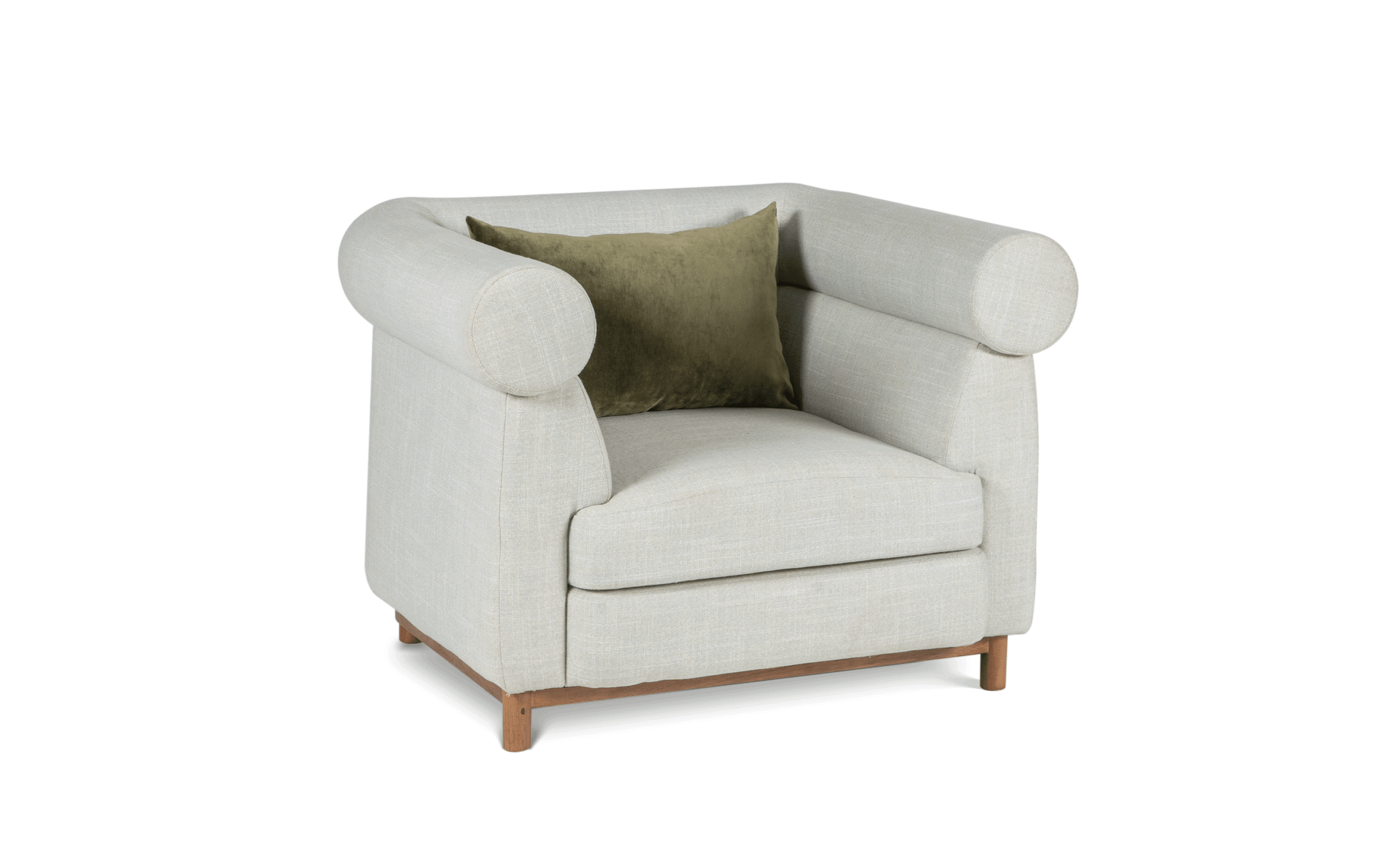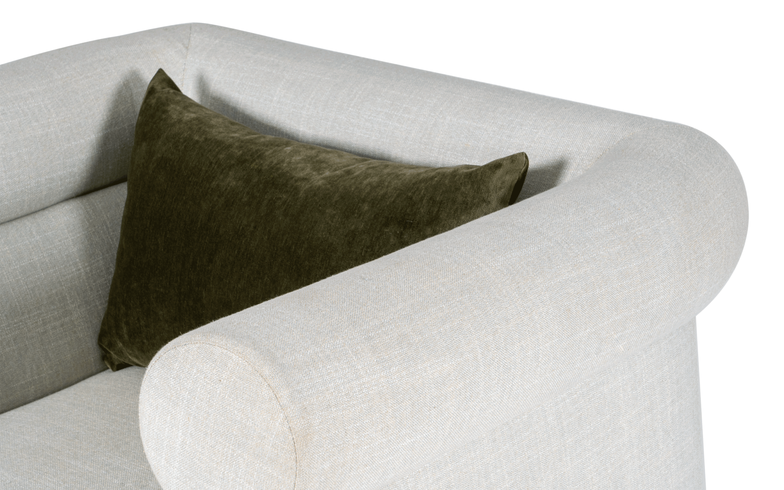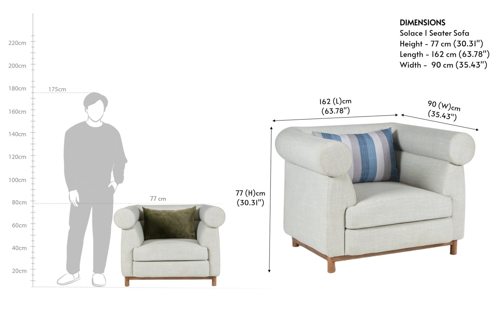 The Solace 1-Seater Sofa combines compact luxury and comfort in a stylish design. With its supportive bolster pillow and elevated wooden legs, it’s perfect for reading nooks or accent spaces. Its sleek profile and plush cushioning make it a timeless addition to any room.