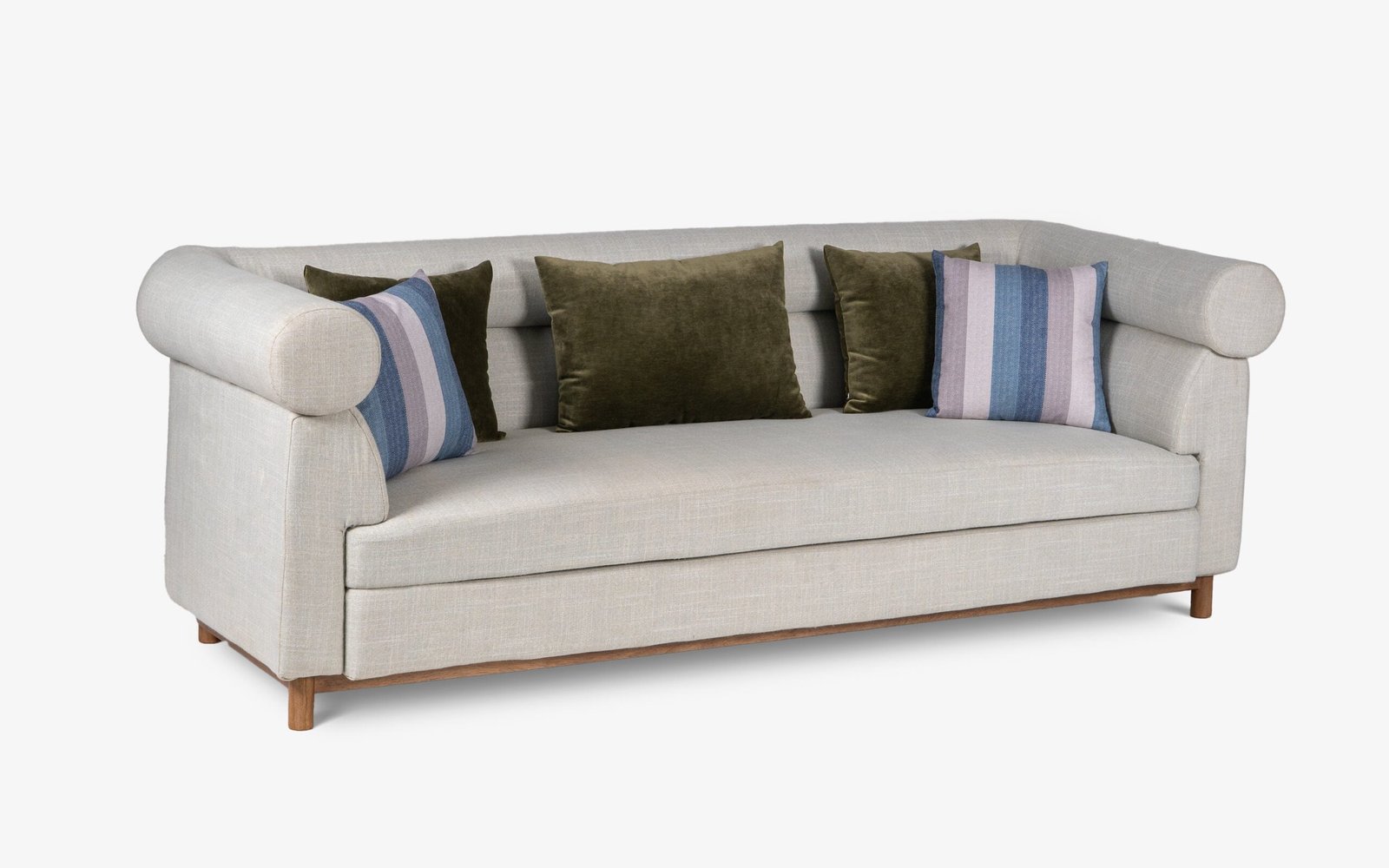 Discover modern comfort with the Solace 3-Seater Sofa, designed to enhance your lounging experience. With its well-upholstered base, cylindrical bolster pillows, and minimalist wooden frame, this sofa perfectly balances style and relaxation. Ideal for any living space, it invites you to enjoy both comfort and contemporary design.
