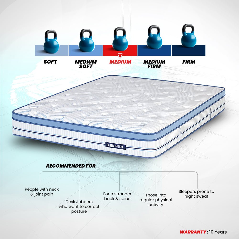 Sleep like never before with Strength Plus – an advanced support Euro top orthopedic mattress recommended and tested by doctors at National Health Academy. Designed with high density coir for firm support and natural coolness, this orthopedic mattress offers 5 Zoned support based on the preferred needs of each zone of your body. Cased in a rich knitted fabric, it comes with a special Euro top finish that offers advanced pressure relief and enhanced plushness for greater comfort and support.